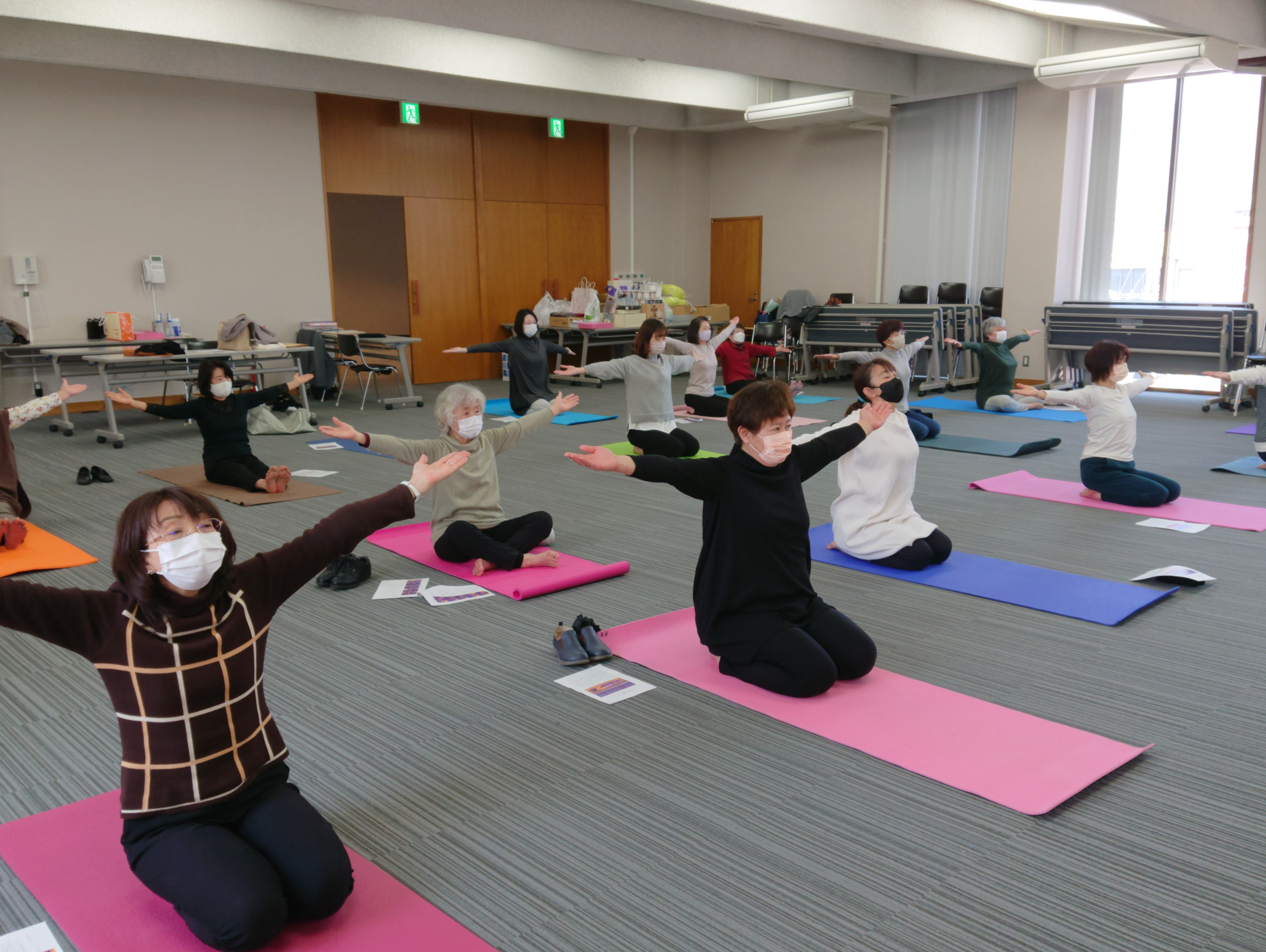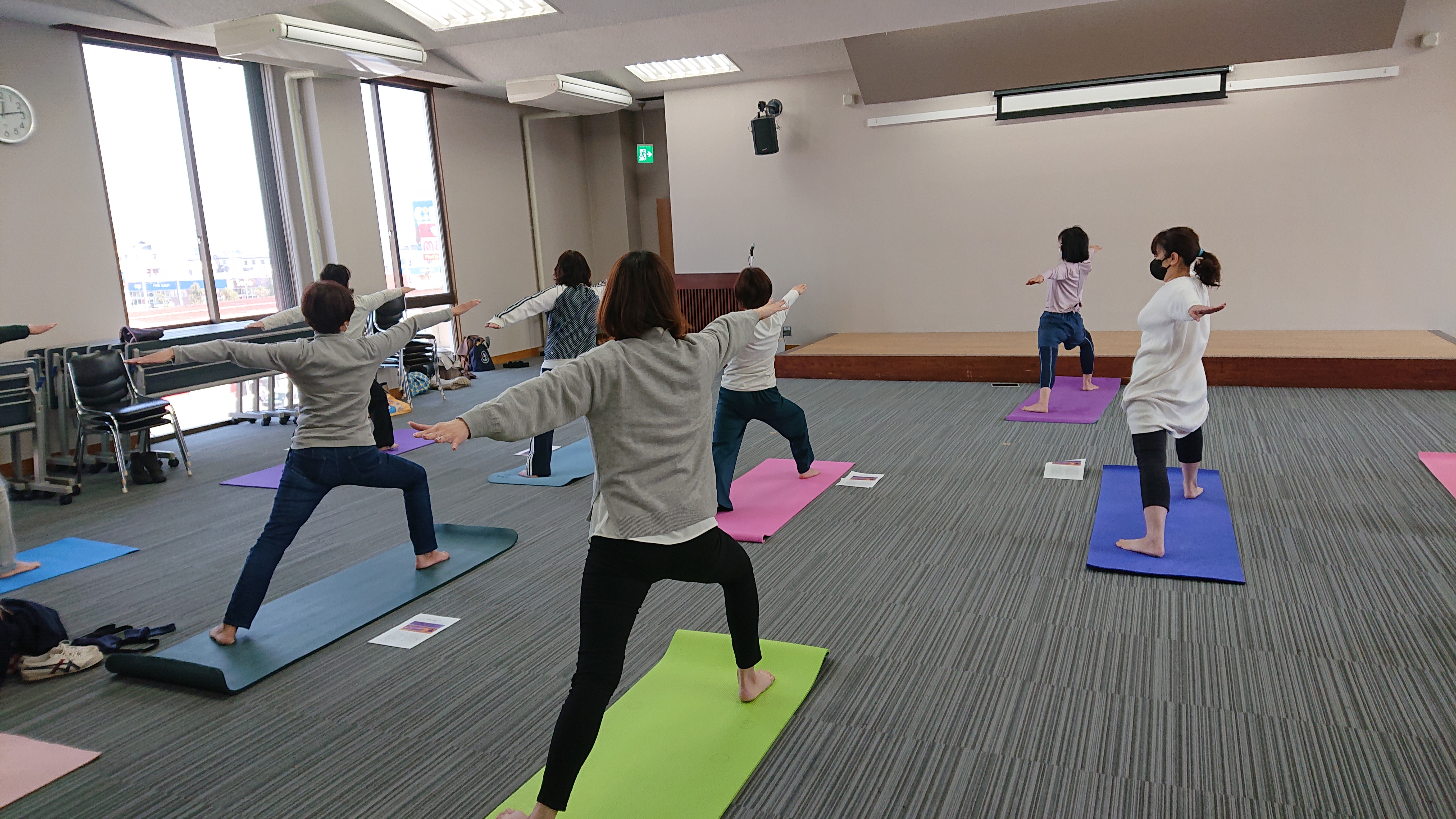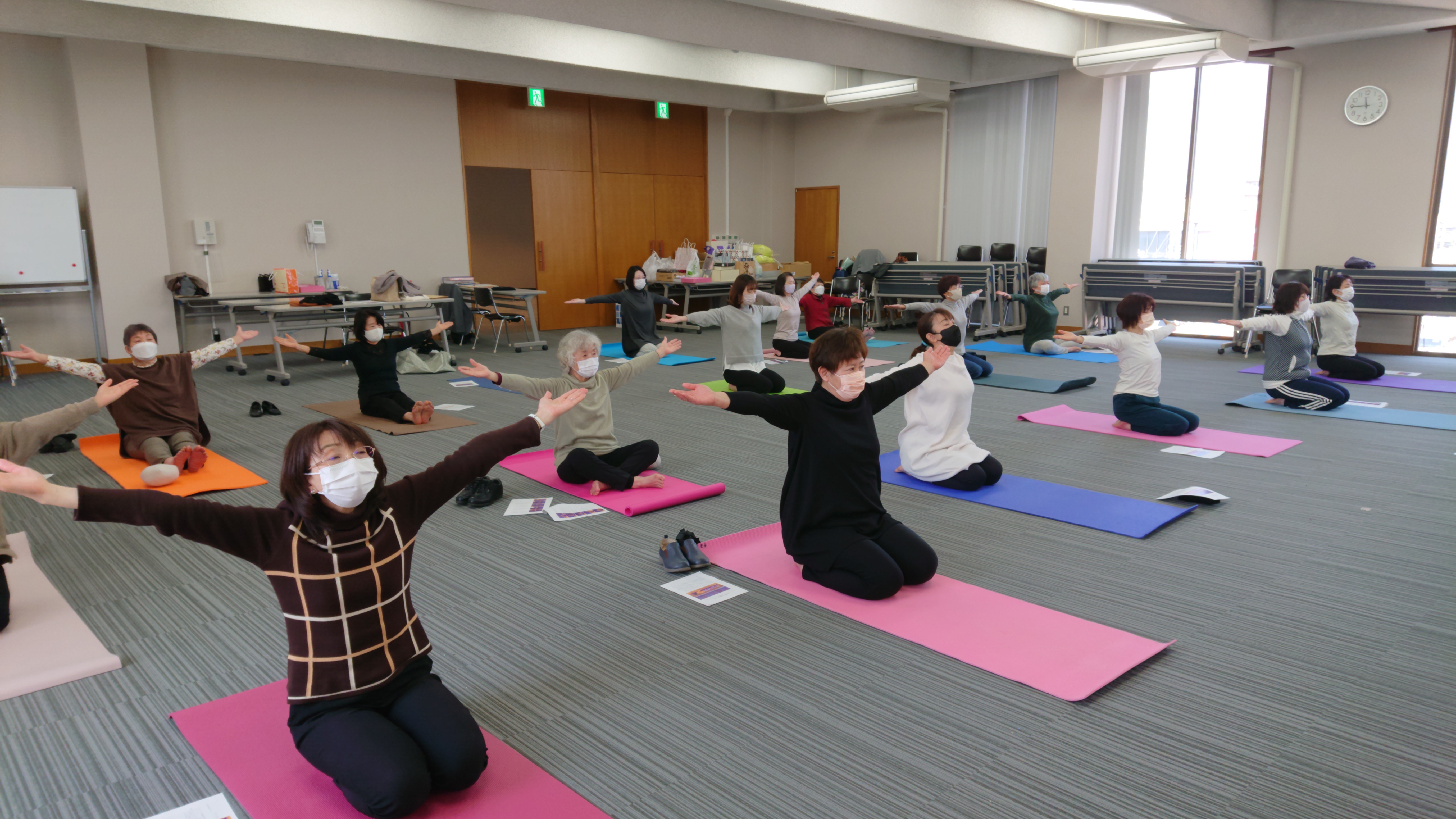 後日、福岡先生より「さすが女性会の皆様!ヨガが初めての方もいらっしゃったそうですが、全員の方のポーズがきれいに決まっていて、驚きました!」とお褒め頂きました。