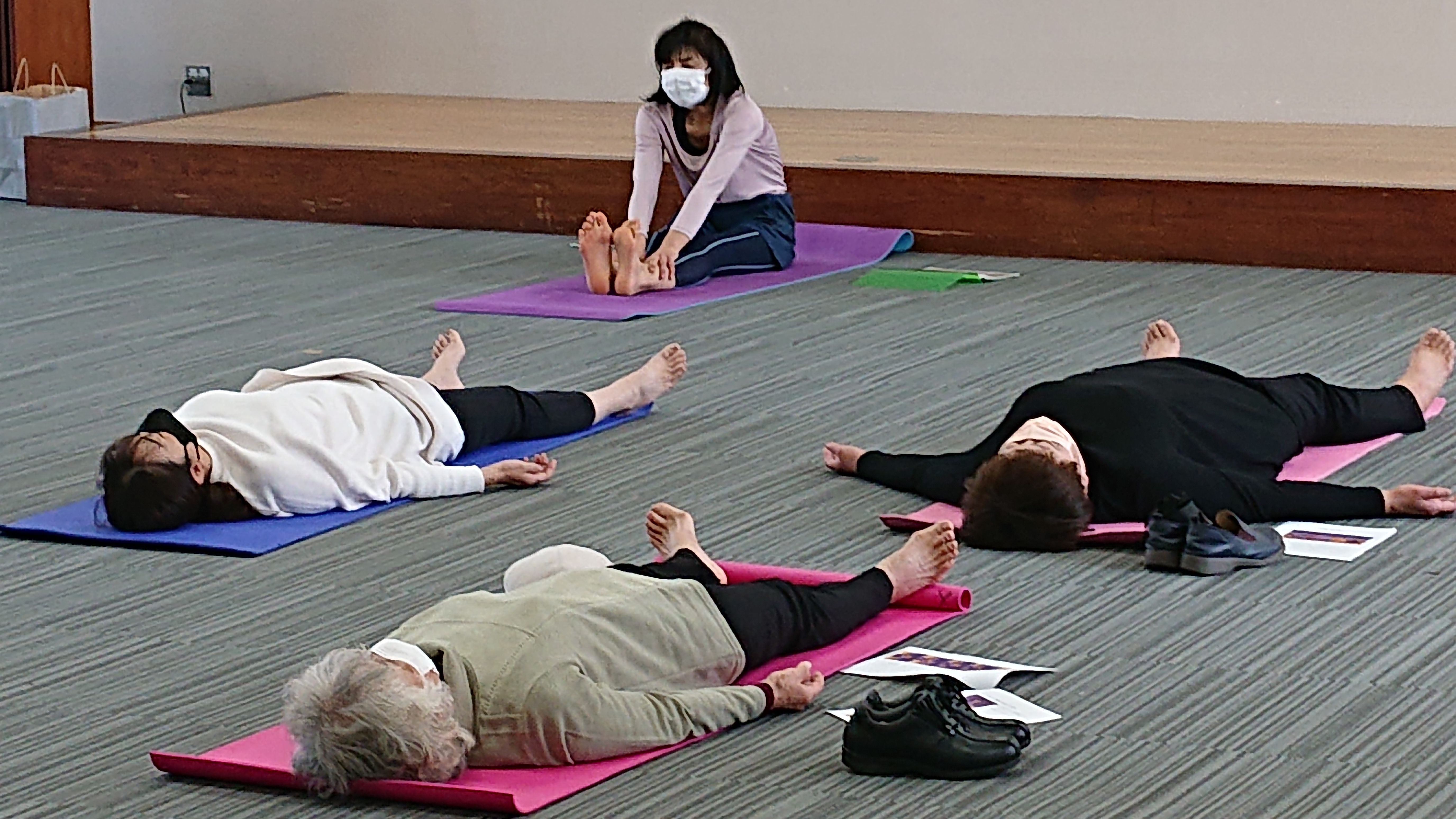 「身体全体が柔らかくなり、ポカポカしています。これを機に今日のヨガをずっと続けて行きたいです」という朝倉会長のお礼の言葉で最後を締めくくって頂きました。