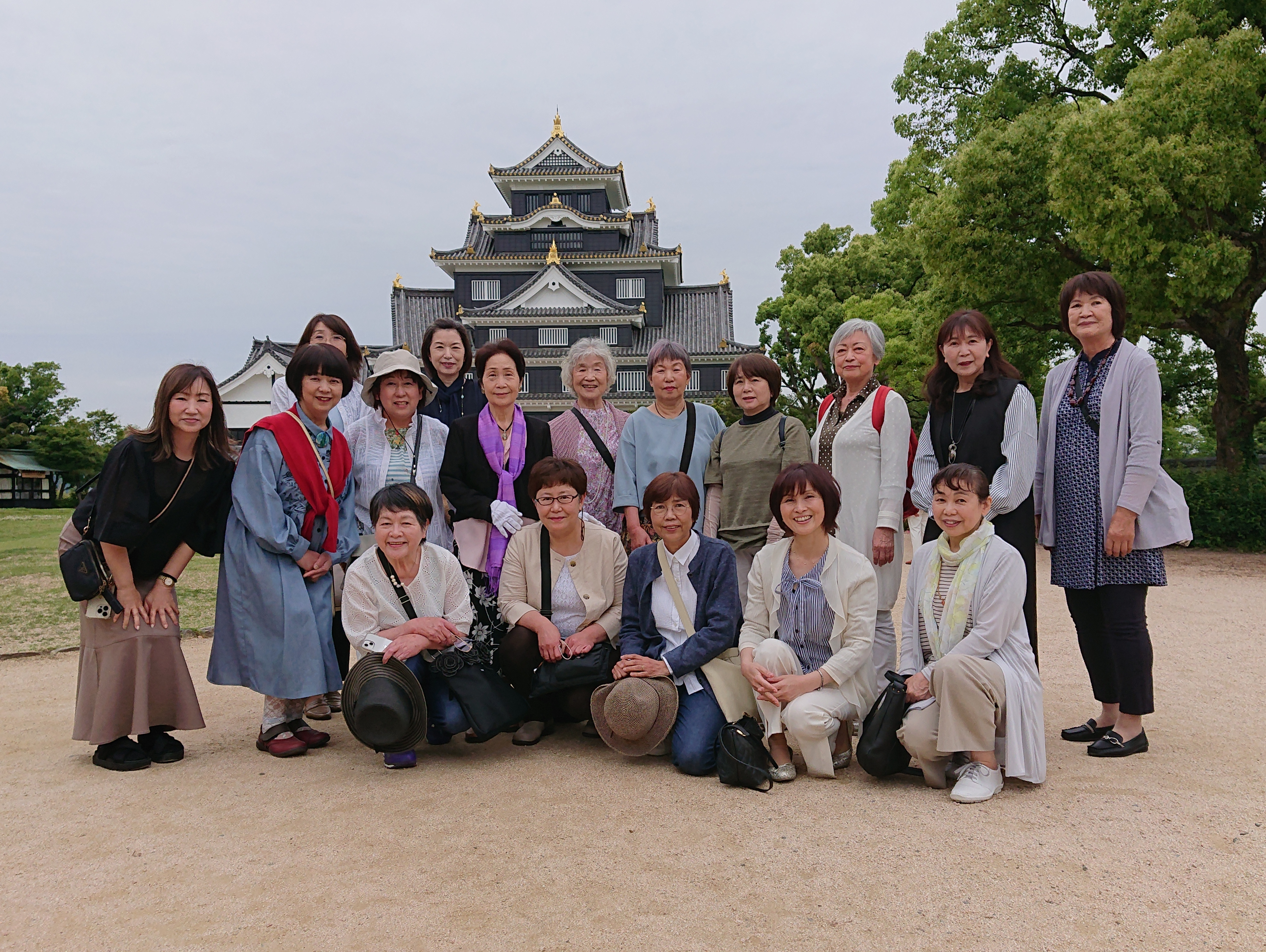 新型コロナウイルス感染症が5類に移行したので、さる5月2 5日に、女性会の移動総会が、4年ぶりに行われました。出発して、早速車中での総会が、滞りなく行われました。あとは皆さん、お楽しみの観光です。リニューアルされた華やかな岡山城へ、倉敷美観地区へ移動し、素敵な所で上品でおいしいランチを頂きました。自由に散策し、日ごろの疲れを癒しました。平日なのに、観光客が多いのにびっくり!特に外国の方、修学旅行生が・・・。