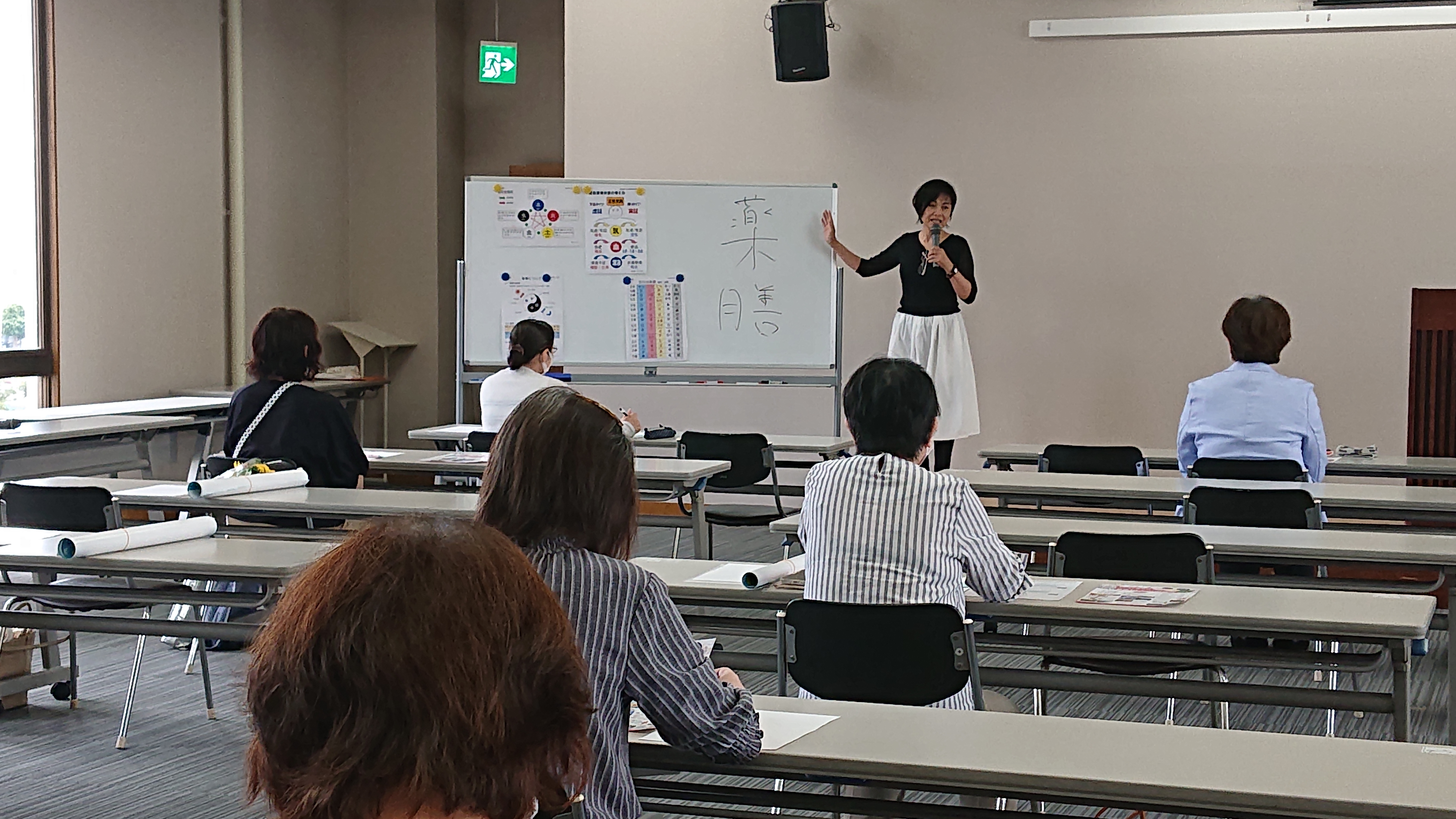 長雨続きの中ちょっとうれしい晴れ間が見えた7月4日、初めての薬膳教室「夏養生」を25名が受講しました。講師は、四国薬膳研究会会長 全日本薬膳食医情報協会教育施設主宰 国際薬膳師の山下れい子先生です。