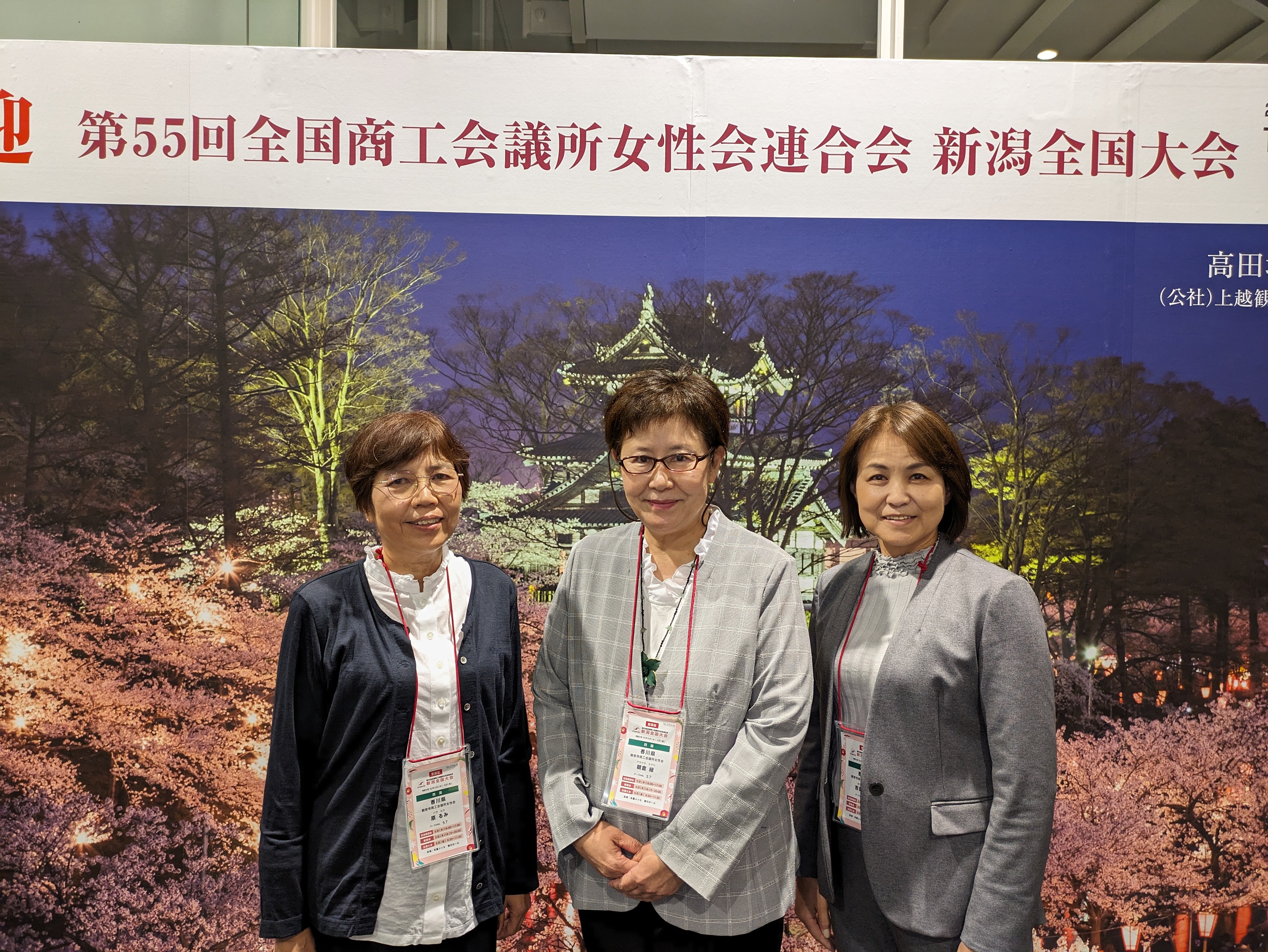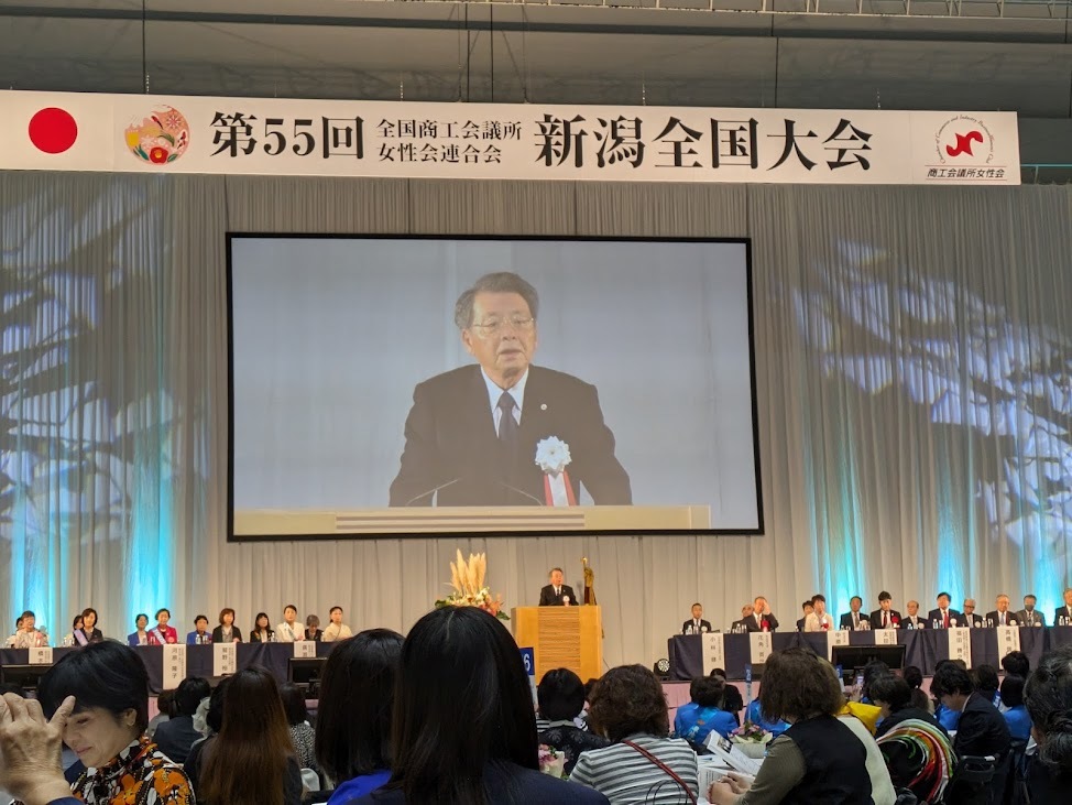 10月5日・6日・7日に3名で新潟全国大会に行ってきました。観音寺駅早朝5時38分発で7時間の長旅に出発しました。昼過ぎに新潟に到着し、ご当地名物「へぎそば」に舌鼓。有形文化財指定の「豪農の館」を見学し、その立派さに感動しながら懇親会会場へ。全国より約2,300名の会員が集結した大会会場は熱気であふれていました。郷土芸能の「万代太鼓」や「古町芸妓」の踊りを鑑賞し、地元の食材で作った「にいがた食の宝石箱」弁当をいただきながら地酒で乾杯。同時開催の物産展もお土産を求める人達であふれ大盛況のようでした。