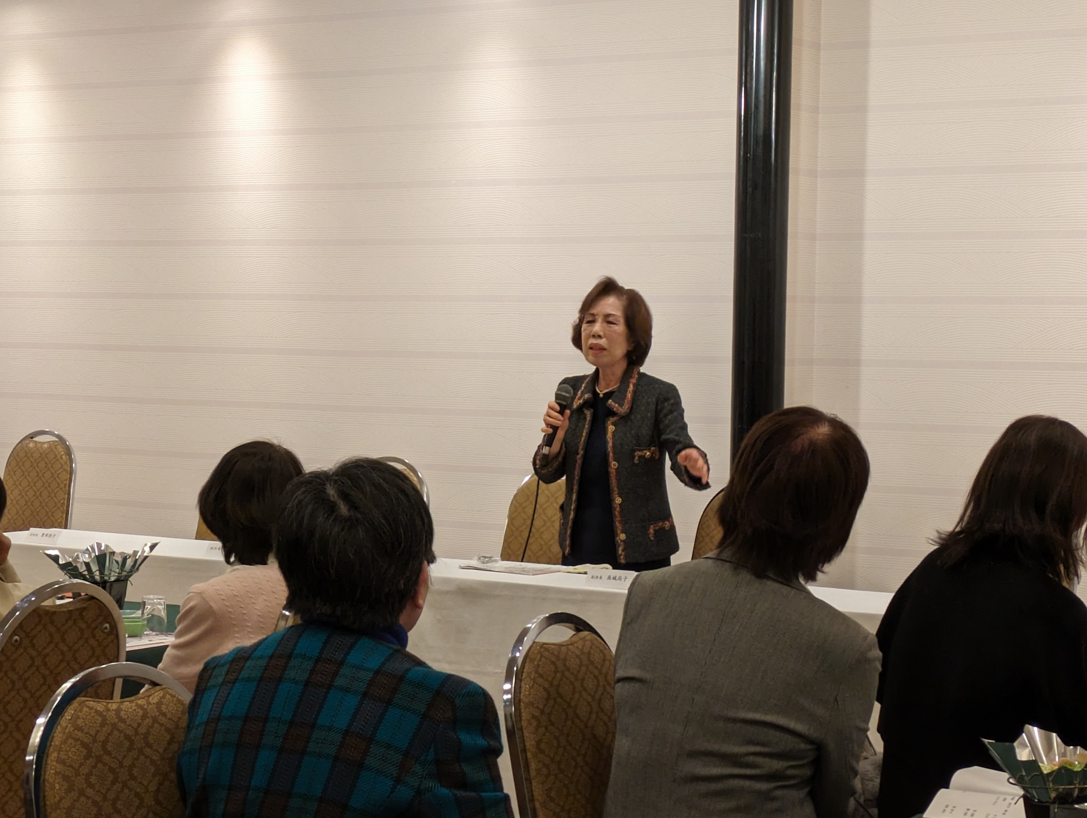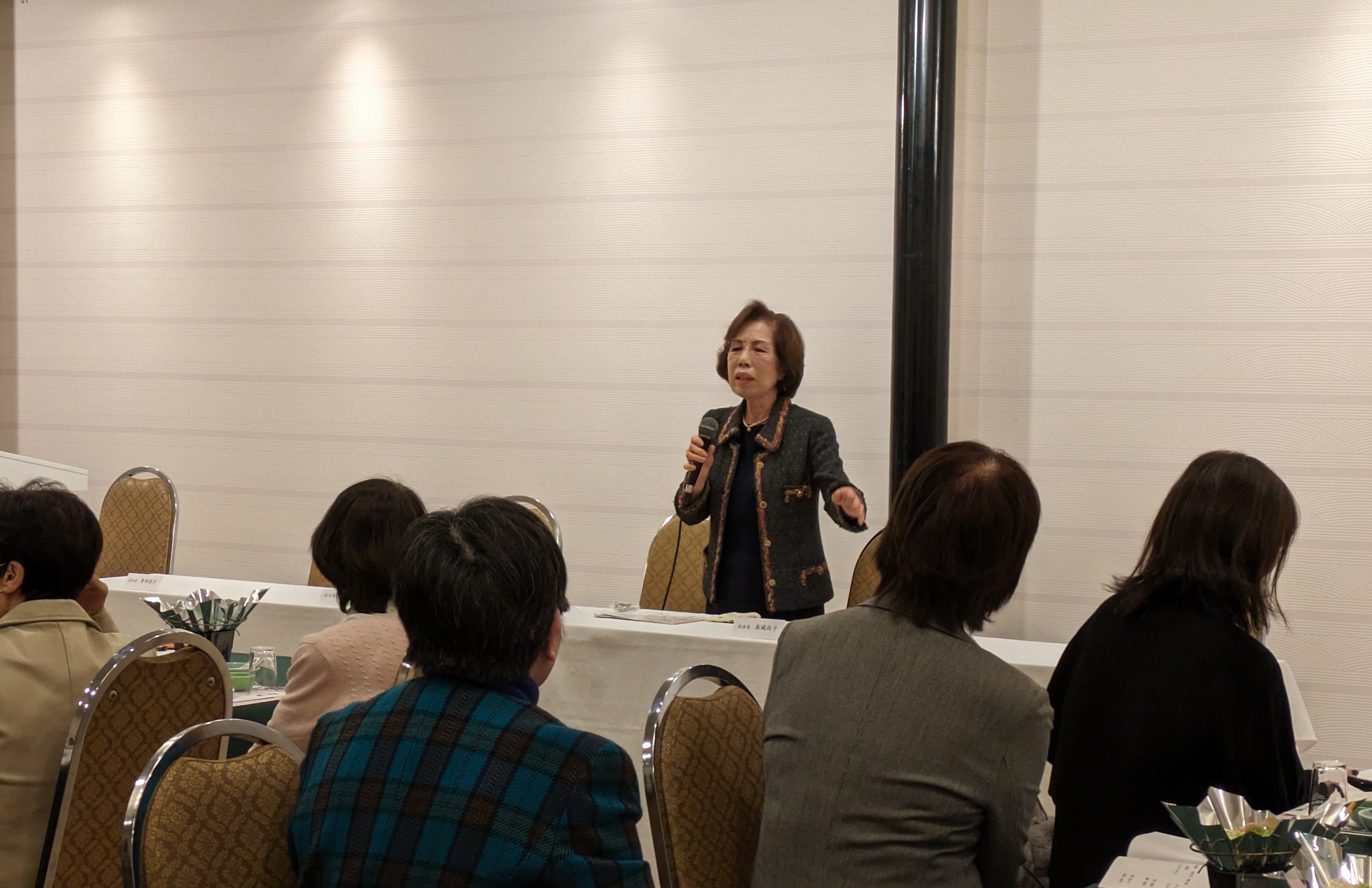 議事に続いて、石川喜美代顧問を講師に迎えミニ講演会が開かれました。設立当時の女性会を知る会員が次第に少なくなり、改めてこの40年の歴史を振り返る貴重な講演をいただきました。その中で平成14年、会員研修旅行で訪れた石川県の女性会の方々の温かいおもてなしが話題となり、被災地の一日も早い復興と、皆様の暮らしが良い方向に向かうことを祈るとともに、私たち女性会でも協力してゆきたいとの声が上がりました。