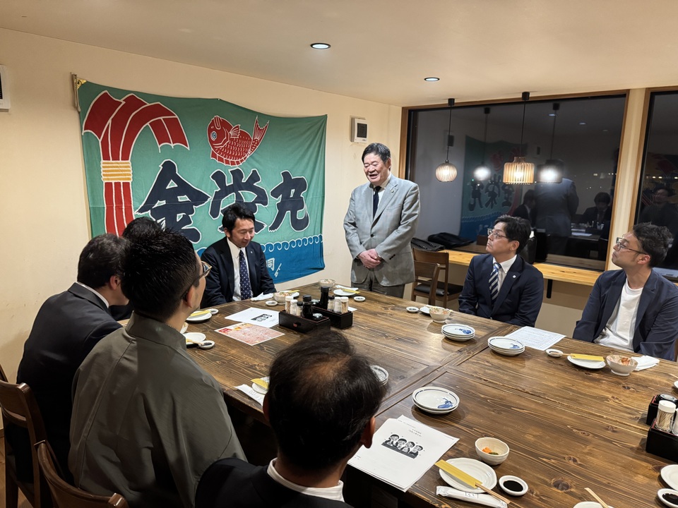 また、翌日の令和7年4月22日(火)には、市長と語る会(夜の部)を開催いたしました。ここでは前日の話をベースに市長と観音寺YEGメンバーがセッションを行う予定でしたが、それだけに留まらず観音寺市に対する新しい意見交換が行われ、後半の質疑応答の場面では、参加者全員が全く違う内容の質問を佐伯市長に投げかけ、それら全てに観音寺市の可能性と未来に対する期待を込めてしっかり回答する様はとても心強いものであり、観音寺YEGメンバーが本気で観音寺市の事を考えていることを再認識出来た場面でもありました。