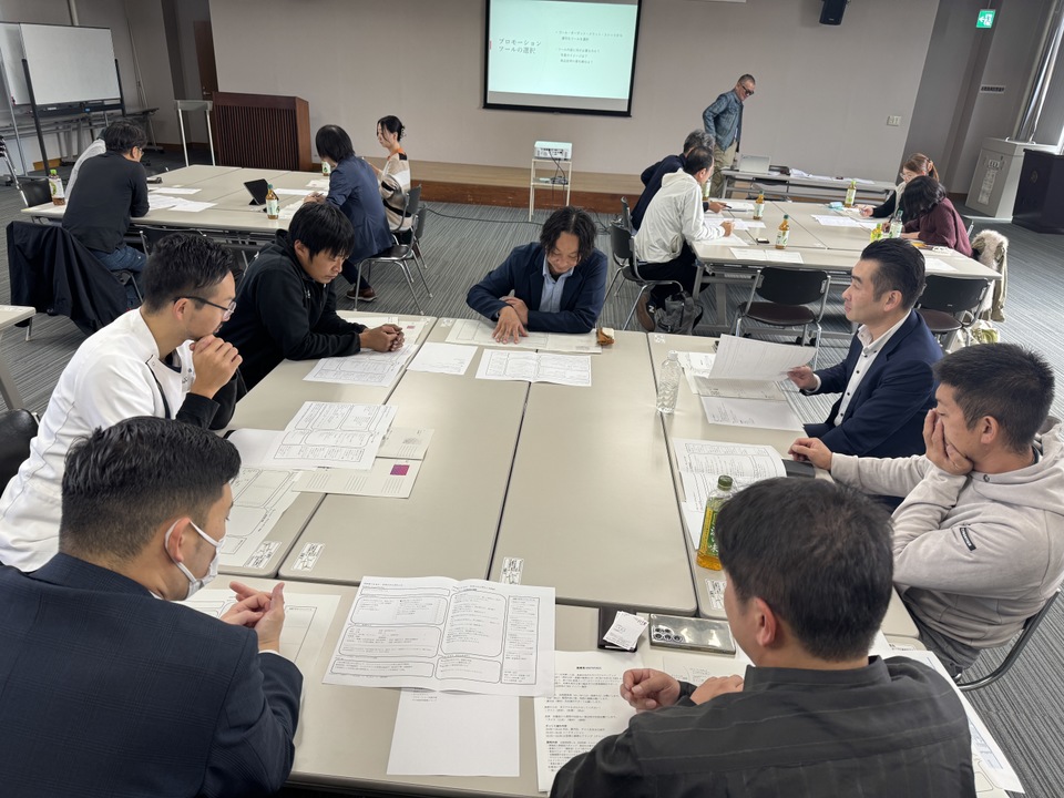 特に参加者を惹きつけたのは、具体的なプロモーション戦略を考えるグループワークです。参加者の皆さんは、与えられたキーワードから自由に発想し、商品開発から販売までの全体像を話し合いました。このワークを通じて、プロモーションのアイデアを見つけ出すことの重要性を深く学びました。